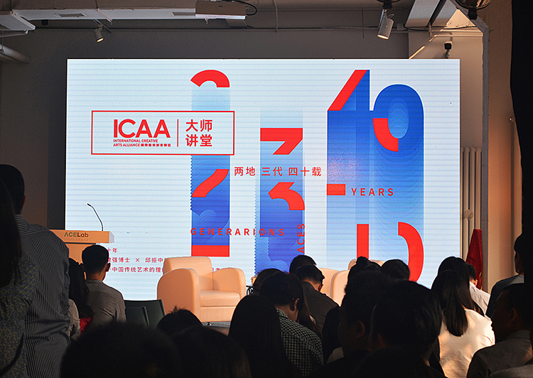 “兩地三代四十載”大師講堂于2016年9月24日在北京798藝術區(qū)召開。次日,“兩地三代四十載”展覽活動于北京今日美術館進行。活動與展覽相輔相成,記錄了三個不同年代的設計人:靳埭強(首位名列世界平面設計師名人錄的華人;國際平面設計聯(lián)盟AGI會員;中央美術學院、清華大學等多所院校的客座教授、名譽教授及講座教授;香港藝術館榮譽顧問;西九文化區(qū)管理局董事會成員)、 劉小康(ICAA學術委員會副主席;ICAA學術委員會副主席;香港設計中心董事會成員;香港設計總會秘書長)和 高少康(亞洲設計連成員;香港十大杰出設計師;透視40驕子;藝術與設計雜志年度人物)的傳承故事,在一個擁有四十年歷史的空間中相繼碰在一起, 隨著時代變遷,通過對藝術與設計美學的研究和了解,以設計作品為兩地述說著現(xiàn)代設計的意識形態(tài)點滴。