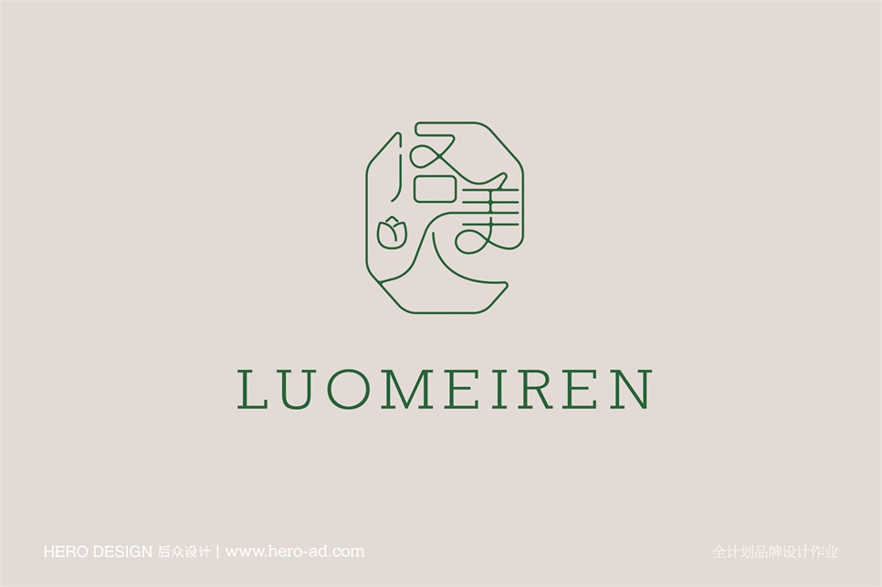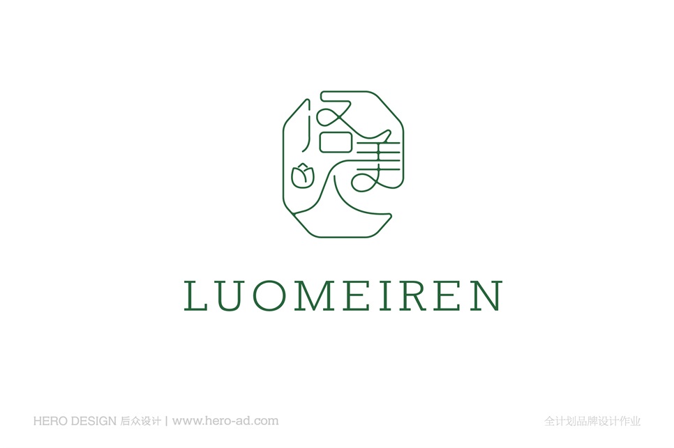洛美人標(biāo)志以字體標(biāo)志進(jìn)行呈現(xiàn),以窗花、花朵、藤蔓為設(shè)計(jì)靈感,進(jìn)行洛美人字體的融入設(shè)計(jì),通過字體的變形設(shè)計(jì)增加視覺層次感以及設(shè)計(jì)感,利用字體與圖形完美結(jié)合設(shè)計(jì)達(dá)到加深品牌記憶點(diǎn)的目的,給足想象空間,具有強(qiáng)大的品牌包容性。
