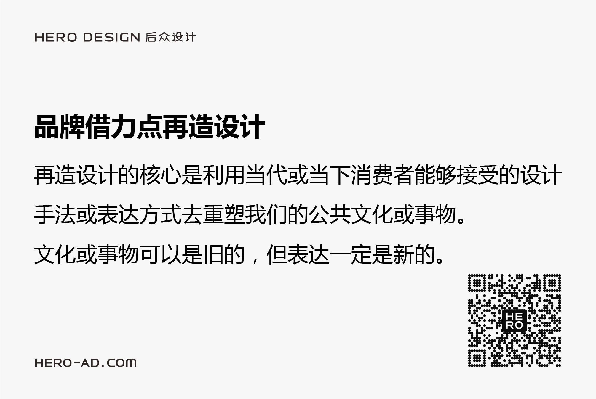在進行品牌借力點再造設(shè)計時,還應(yīng)值得注意的一點是“當(dāng)代的設(shè)計手法與表達方式”。