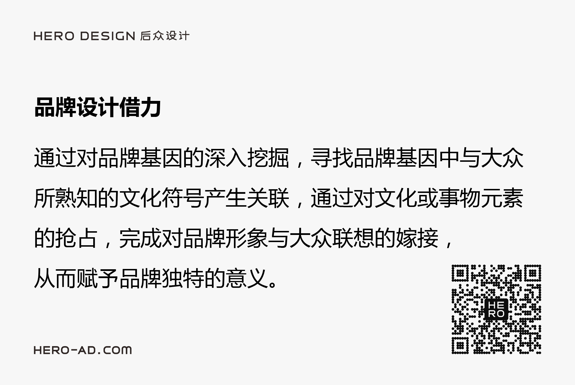 品牌設(shè)計借力即通過對品牌基因的深入挖掘,尋找品牌基因中與大眾所熟知的文化符號產(chǎn)生關(guān)聯(lián),通過對文化或事物元素的搶占,完成對品牌形象與大眾聯(lián)想的嫁接,從而賦予品牌獨特的意義。